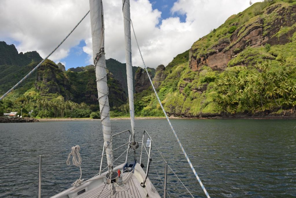 Ohne Bruch, ohne Verletzte, ohne echten Streß sind wir heute Mittag auf FATU HIVA, der südlichsten der MARQUESS Inseln gelandet. Die letzte Nacht war noch mal besonders doof, alles von motoren, über motor-segeln und segeln, aber immer schön rollend!