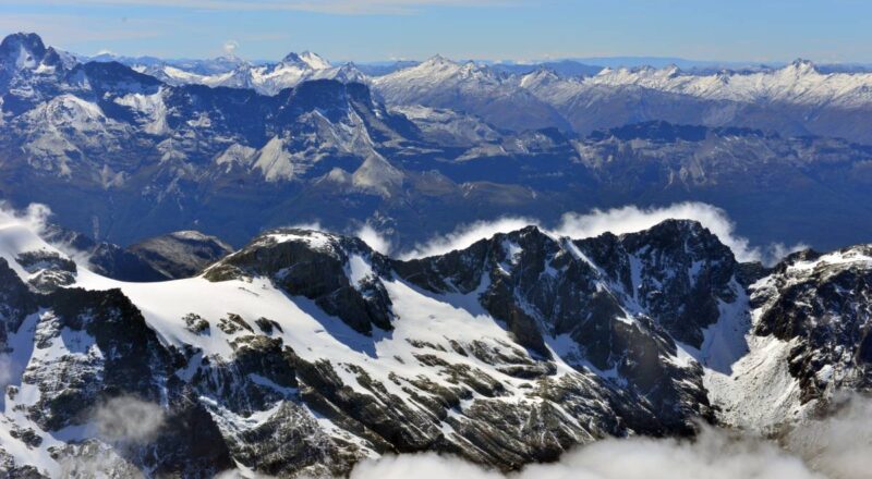 Den ersten Stop machen wir im MILFFORD SOUND Airport…da waren wir ja per Straße vor drei Tagen und kennen das Revier. Kurz mal die Füße vertreten und dann fix weiter. Wir steigen immer weiter in die Höhe und landen, wenn ich das richtig mitbekommen habe auf 9.000 Fuß auf einem Gletscher mitten im Schnee.