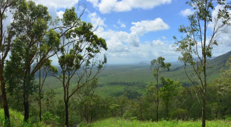 Für den Donnerstag haben wir mal wieder eine Inland-Fahrt vorgenommen. Wir wollen zum VULCANIC NATIONAL PARC UNDARA. Das sind (leider) knapp 400 Kilometer, aber die Fahrt wird wirklich super. Kaum Verkehr, wieder schnurgerade, lange Straßen und ab und zu kommt uns auch mal ein ROAD TRAIN entgegen. Die dürfen offenbar nur auf bestimmten Strecken-Abschnitten fahren und haben, entsprechend ihrer Größe, zumindest implizite Vorfahrtrechte 😉