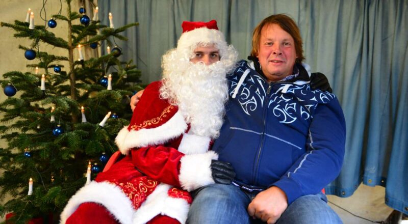 Die Mutter positioniert sich mit der Kamera vor Weihnachtsmann und langjährigem Lebensgefährten…