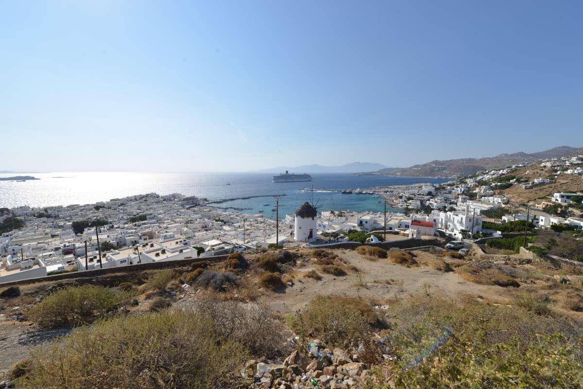 MYKONOS ist eigentlich nur ein großer Schutthaufen im Wasser. Steppe, Sand, Geröl, Fels – landschaftlich eher eine vier denn eine eins. Die Stadt MYKONOS hat mit ihren engen verwinkelten Gassen und kleinen Häuschen sicher ihren Charme…wenn man denn nicht umgeben von Millionen anderen Touristen wäre. Hier kommen täglich drei bis vier große Kreuzfahrer vorbei und kippen ihre Ladung an Land. Wir mitten drin!
