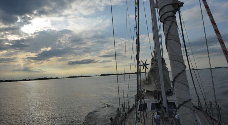 Nicht an das Ende denken, den Moment genießen. Anfangs auf der Elbe Nähe CUXHAVEN eher Frust. Mit 3,5 Knoten gen HAMBURG ist echt langweilig…später dann 9,2 Knoten. Wer denkt, die ELBE ist ein langweiliger Fluss…falsch: Wildwasser wäre richtiger!