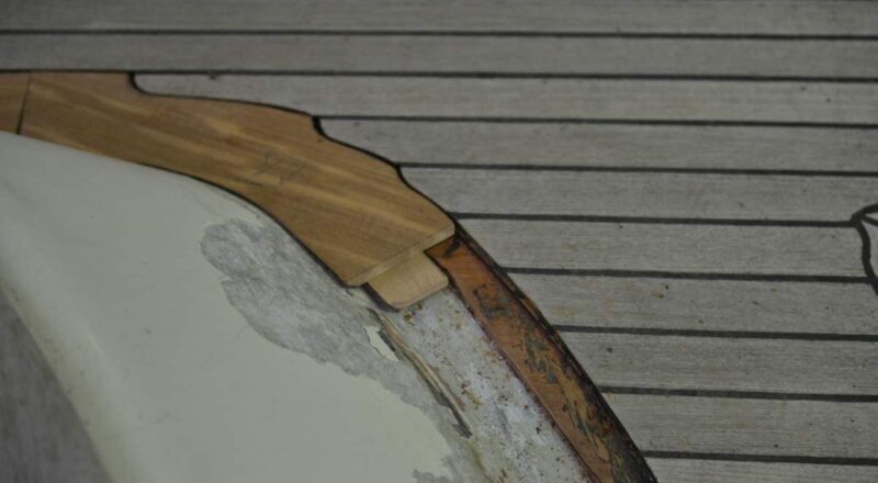 Aufgrund von internen Arbeitsabläufen in der Werft wurde entschieden, bereits jetzt die zu ersetzenden Teak-Leibhölzer komplett samt Sperrholz-Unterbau herzustellen und einzupuzzeln. Das ist wirklich eine Puzzel! Wenn das erledigt ist, geht es an die Vorbereitung der Aluminiumhülle.