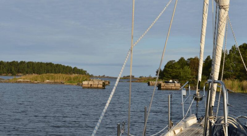 Dann stramm unter Segeln nach SÜD-WEST – noch einmal schöne Schären und enge Fahrwasser genießen! Das berühmte Schloss LÄCKÖ versinkt im Regen und sieht wenig einladend aus, aber wir wollen sowieso etwas weiter in die Schären, nach SPIKEN.
