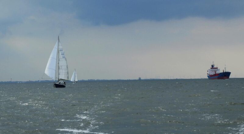 Wir haben sogar noch mehr Glück: Beim Queren des Fahrwassers der ELBE nur sehr wenig Schiffsverkehr – keine Kursänderungen oder gar Aufreger notwendig.