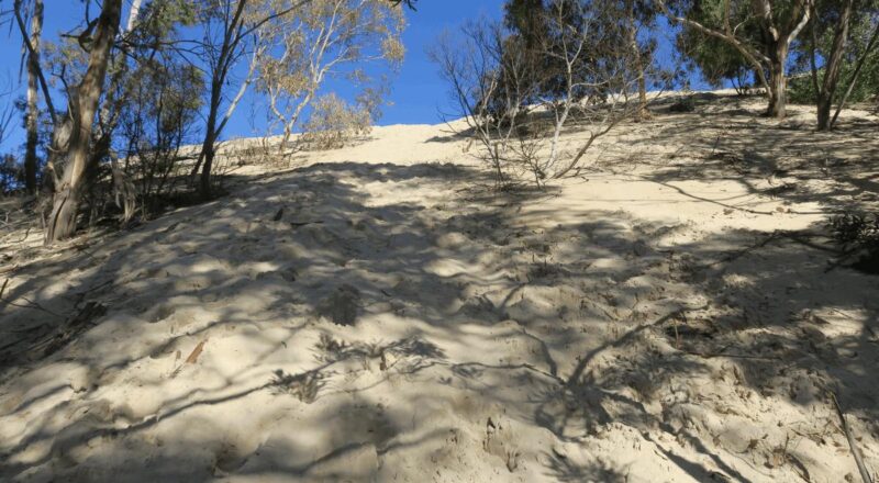 Unterwegs machen wir kurz Stop an der HENTY DUNES. Düne…so steht es jedenfalls in der Karte. Nichtsahnend klettern Paul und ich also sehr mühevoll die Düne hinauf, die Ladies bleiben unten, und wir erwarten zur Belohnung nach dem Aufstieg direkt dahinter liegend das Meer.