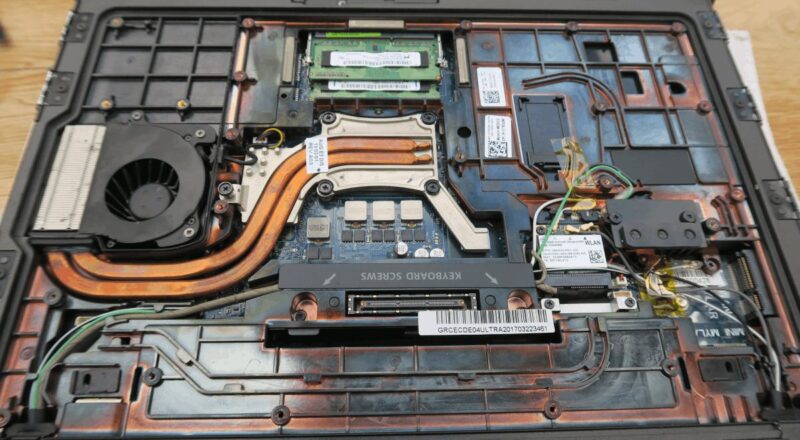 Nun denn. Paste auf die CPU, das Thermal Pad zugeschnitten und auf das Chipset und die GPU geklebt, auch da Wärmeleitpaste drauf und die Heatpipe wieder montiert. Gehäuseboden angeschraubt, Test. Läuft super und gefühlt wird der Rechner auch nicht mehr so schnell heiß.