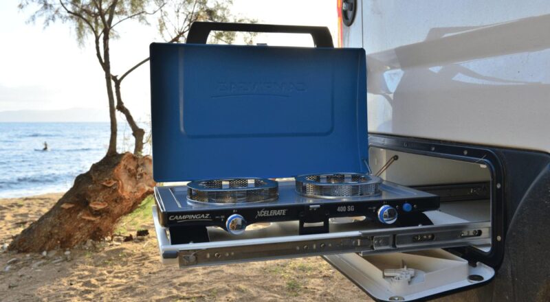 Macht ja auch durchaus Sinn, denn das wahre Camperleben spielt sich bekanntlich wohl eher im freien ab. Wer will in grandiosen Landschaften bei bestem Wetter schon drinnen im Wohnmobil am Herd stehen und kochen? Oder gar braten und dabei mehr oder weniger unelegant das entstehende Bratfett im Wohnbereich verteilen?
