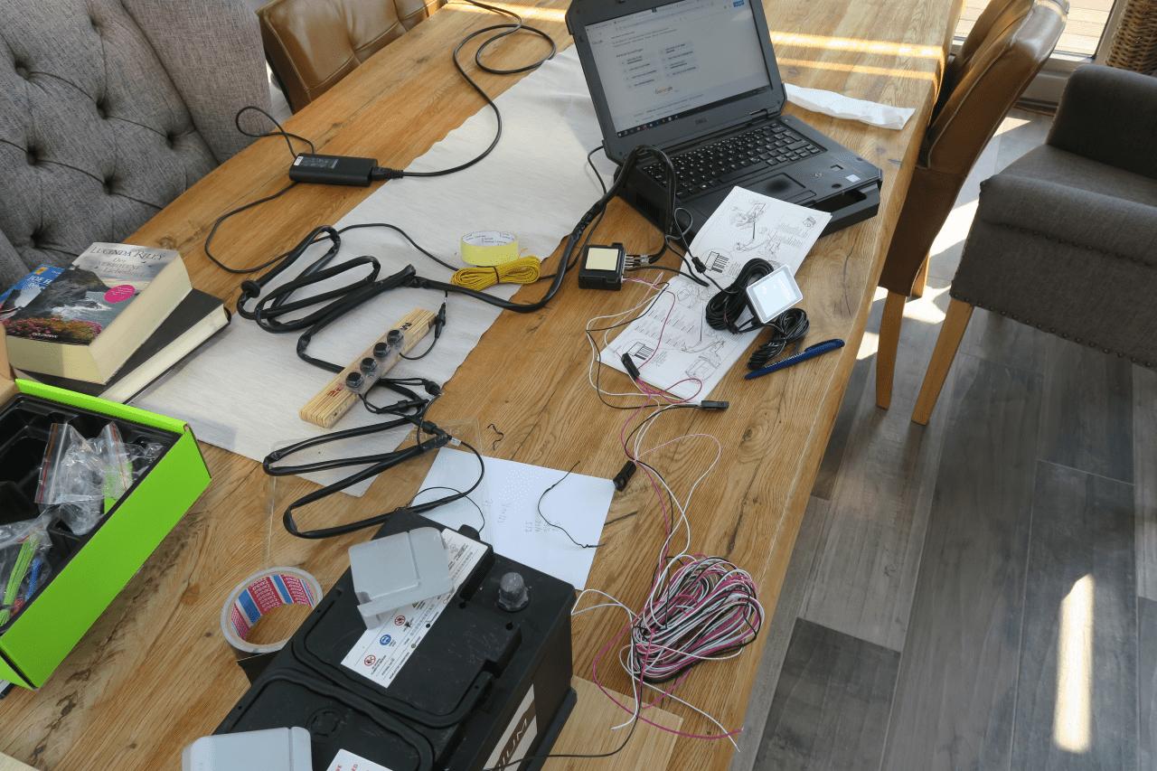 Bei langen Fahrzeugen (KNAUSi: 6,40 Meter) unbedingt auch das Verlängerungskabel für das Display beschaffen. Ganz geschickte können dieses dreiadrige Kabel aber wohl auch selbst verlängern.