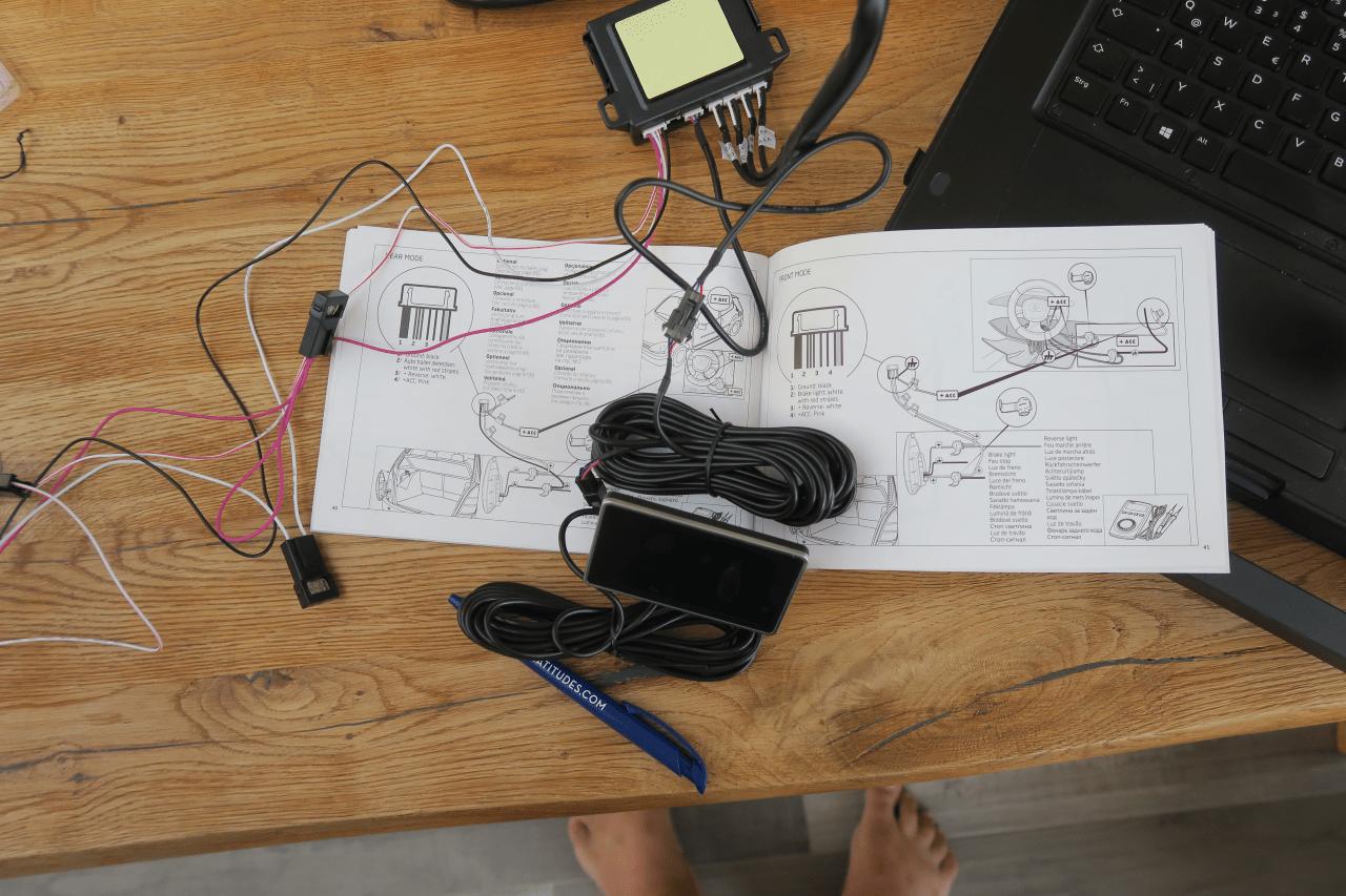 Für die Stromversorgung verlangt die VALEO Anleitung, das man einmal an „geschaltetes Plus“ vom Zündschloss geht, einmal an „Rückfahrscheinwerfer Plus“ und einmal an „Fahrzeug Minus“. Wozu das geschaltete Plus gut sein soll, wird leider nicht erklärt. Im schlauen INTERNET stand geschrieben, man könne auch einfach beide Plus an das Rückfahrscheinwerfer Plus hängen.