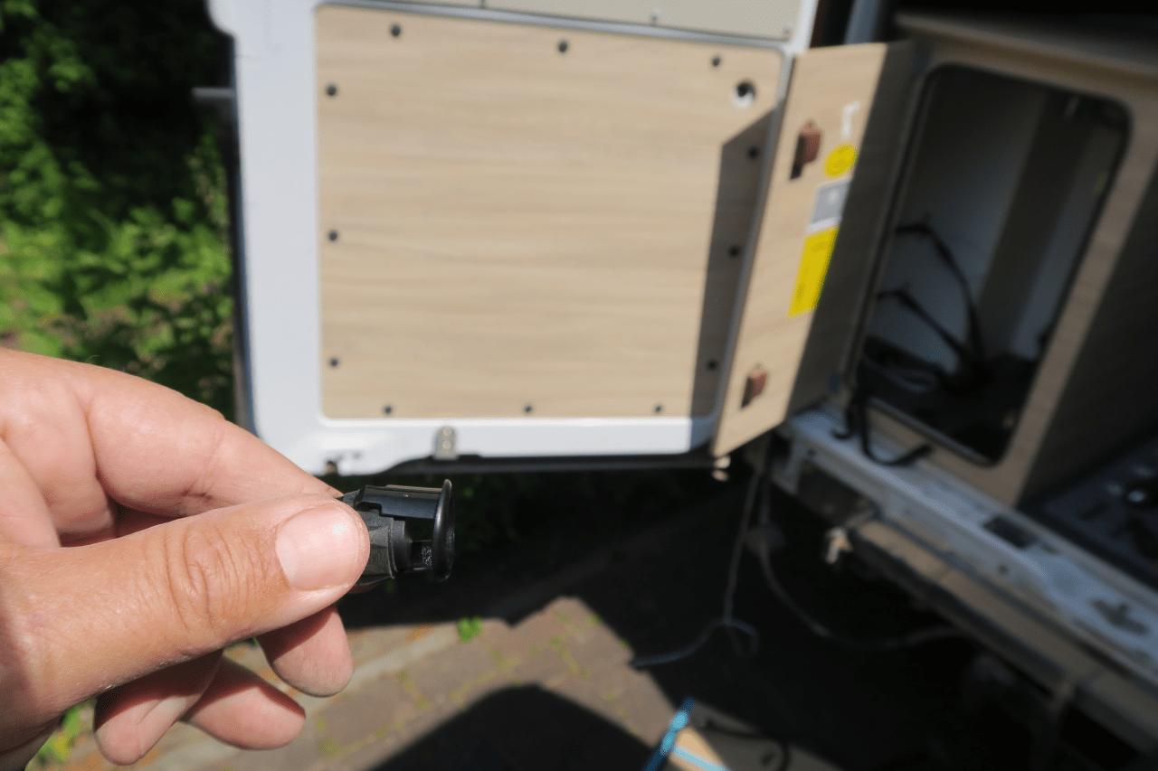 Das Verlegen der Kabel ist wie immer die eigentliche Herausforderung bei einem solchen Projekt. KNAUSi wurde direkt nach Kauf in einer Werkstatt mit zusätzlichen Rückfahrtscheinwerfern ausgerüstet. Das Kabel dafür wurde unter dem Fahrzeugboden verlegt und diente nun beim PDC Einbau als Orientierung. Die Werkstatt hatte für die Zusatzlampen einen Dreiwege Schalter im Cockpit vorgesehen: