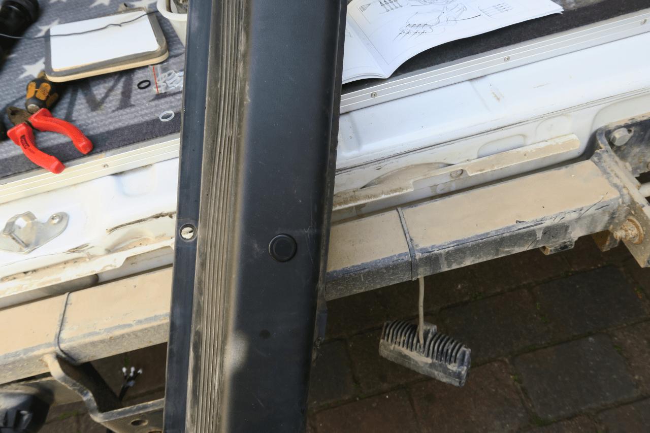 Erst im zweiten Anlauf eine Methode gefunden, wie man die vier Sensoren auf der Stoßstange positioniert. Dazu muss die Heckstoßstange des DUCATO´s erst mal abgebaut werden, Kinderspiel die paar Torx Schrauben zu finden und das Teil ab zu bekommen.