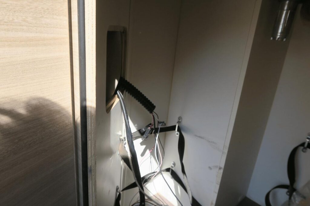 Das Steuergerät ist auf der Innenseite einer kleinen Wartungsklappe des Gaskastens montiert. Damit ist es außerhalb des Gaskastens und da, wo sowieso das Rücklicht ist und viele Kabel lang laufen.