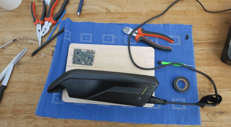 a) Nach Durchmessen der Diode dachte ich, diese sei kaputt. Ein KLEINANZEIGEN.DE Anbieter bot die Reparatur für 60 € an. Also nach PAPENBURG geschickt und erfahren, das die Diode OK sei, aber ein IC kaputt wäre. Den könne man nicht ersetzten. Aber er habe da noch ein funktionierendes BMS aus einem BOSCH POWERPACK 400. Das würde fast 1:1 auch in einem 500er POWERPACK funktionieren, nur die Reichweitenanzeige des Bordcomputers würde ein fünftel zu wenig anzeigen. Also dieses gebrauchte Ersatzteil für 105 € incl. Porto gekauft und verbaut. Mal sehen, wie lange das hält…