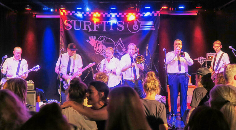 Ein kleiner Konzertbericht von einer Band, die so völlig andere Musik als die sonst hier so gehörte macht? Nun, die Auflösung ist einfach. Zum einen zelebrierten die SURFITS am Samstag ihr 25 jähriges Bestehen mit einem gefeierten Jubiläumskonzert, zum anderen spielt die größte Tochter seit 19 in dieser Band, die ihre Musikrichtung mit SKA PUNK angibt.