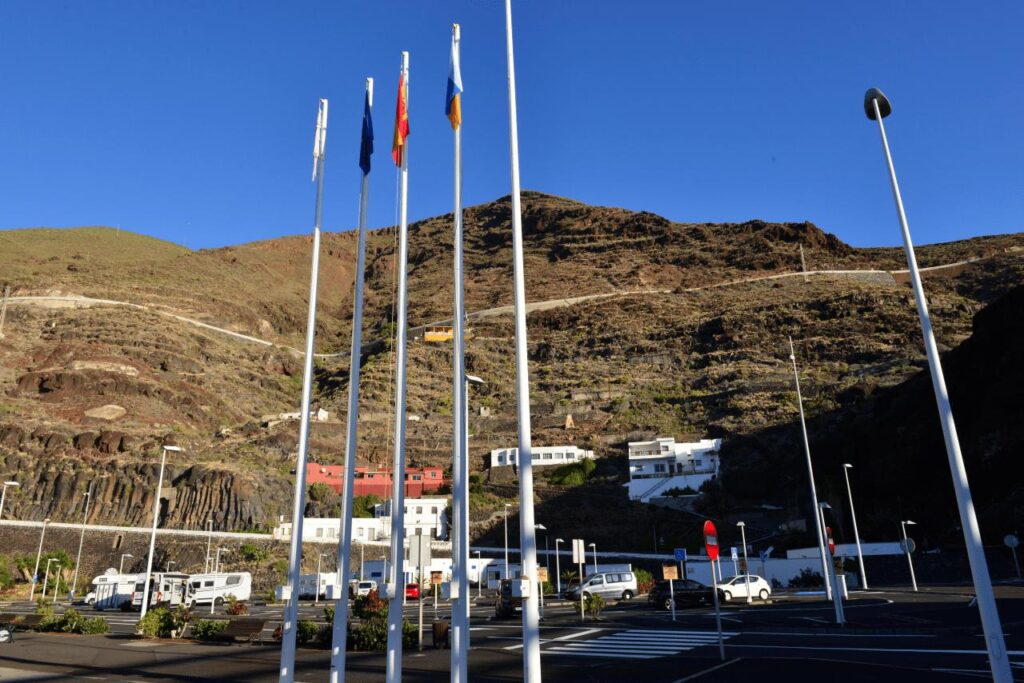 Nach Ankunft der Fähre gegen 2100 folgt eine kurze, aber ruhige Nacht (tatsächlich Totenstille nach dem die mächtig lauten Maschinenraumlüfter der Schnellfähre MV VOLCAN DE TIRAJANA abgestellt wurden) auf dem Parkplatz des Fährhafens PUERTO DE LA ESTACA auf EL HIERRO.