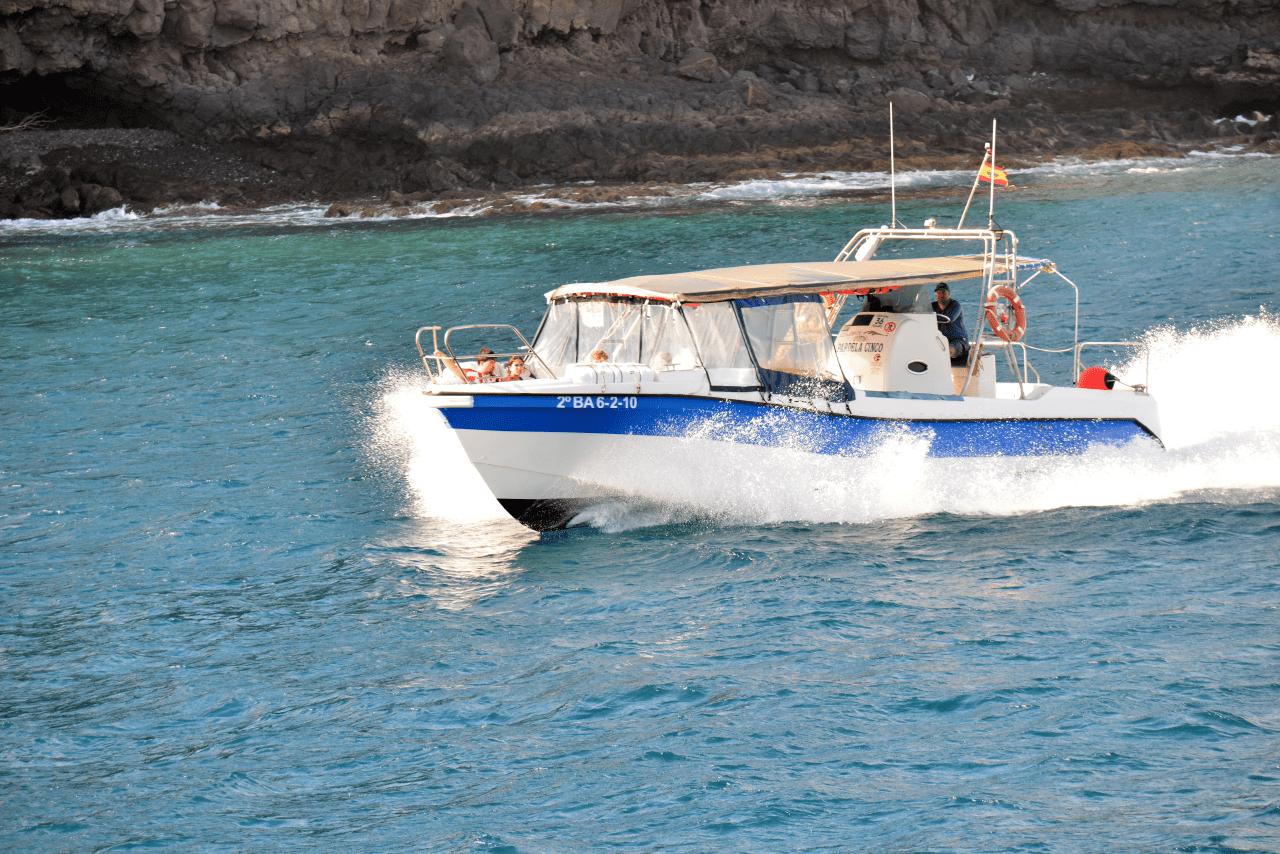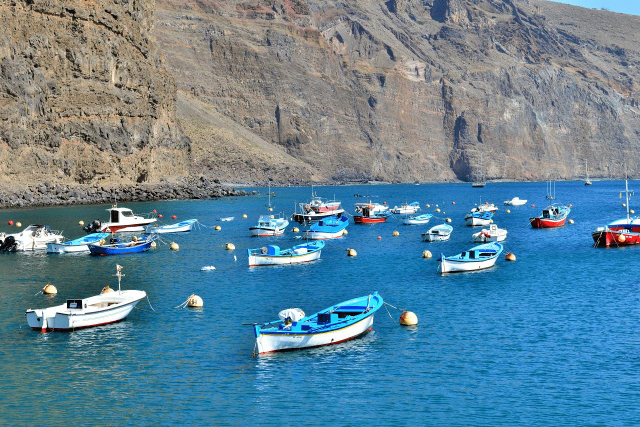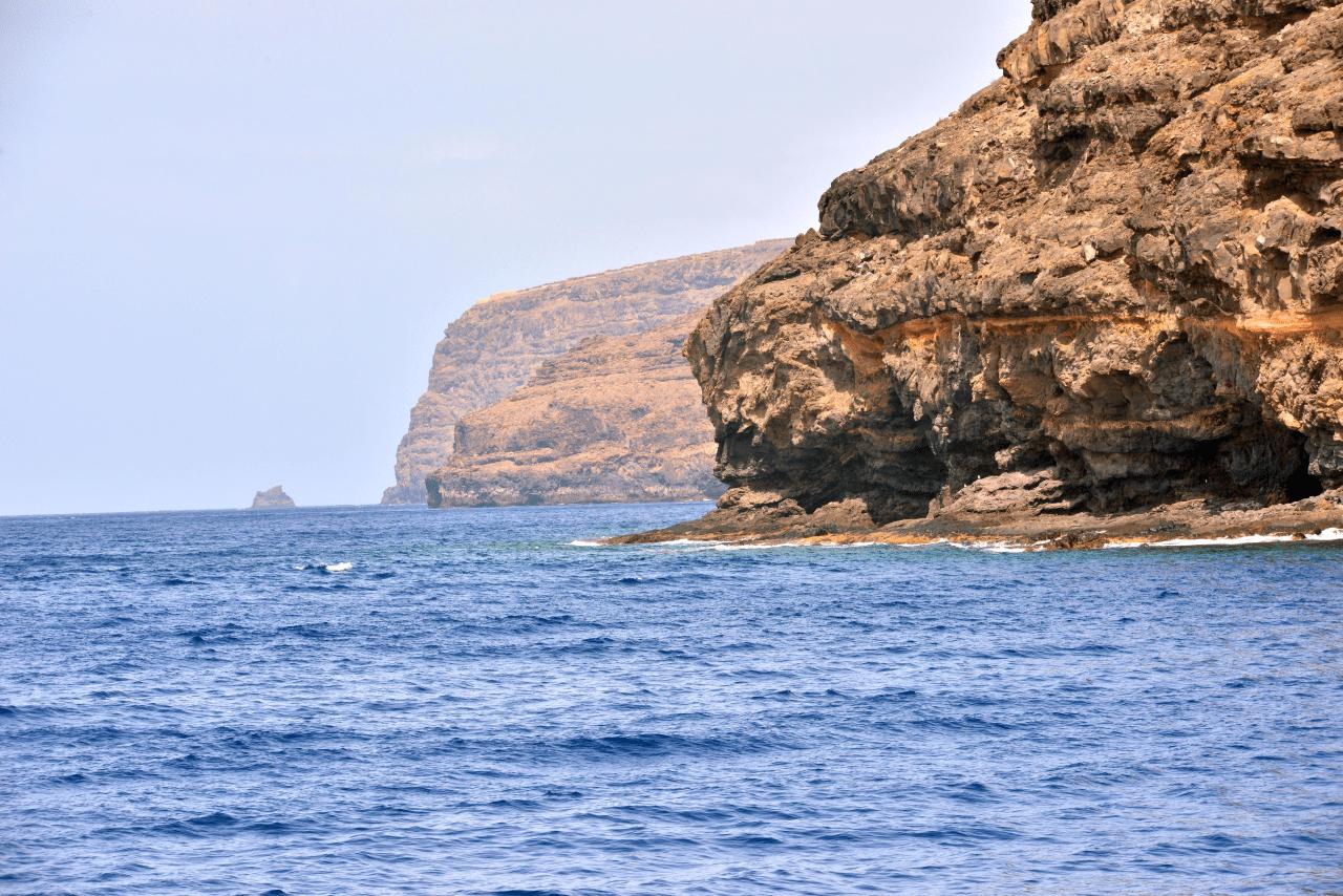 Von den ganzen Fährfahrten nicht genug bekommend, beschließt die interkontinentale Reisegruppe die Wohnmobile E.T. und KNAUSi auf dem bewachten Parkplatz im Hafen von SAN SEBASTIAN DE LA GOMERA zurück zu lassen und am ersten Tag auf LA GOMERA mit einer kleine Personenfähre die Südküste von LA GOMERA vom Wasser aus zu erkunden.