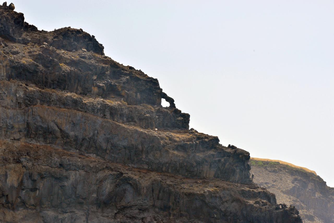 Auf der Rückfahrt nach SAN SEBASTIAN DE LA GOMERA ist die BENCHI EXPRESS deutlich besser ausgelastet, viele Passagiere haben großes Gepäck dabei, offenbar ist der Urlaub zu Ende? Die Nachmittagssonne taucht die am Morgen noch eintönig daher kommende Felslandschaft in faszinierendes Licht, also noch mal alles fotografieren.
