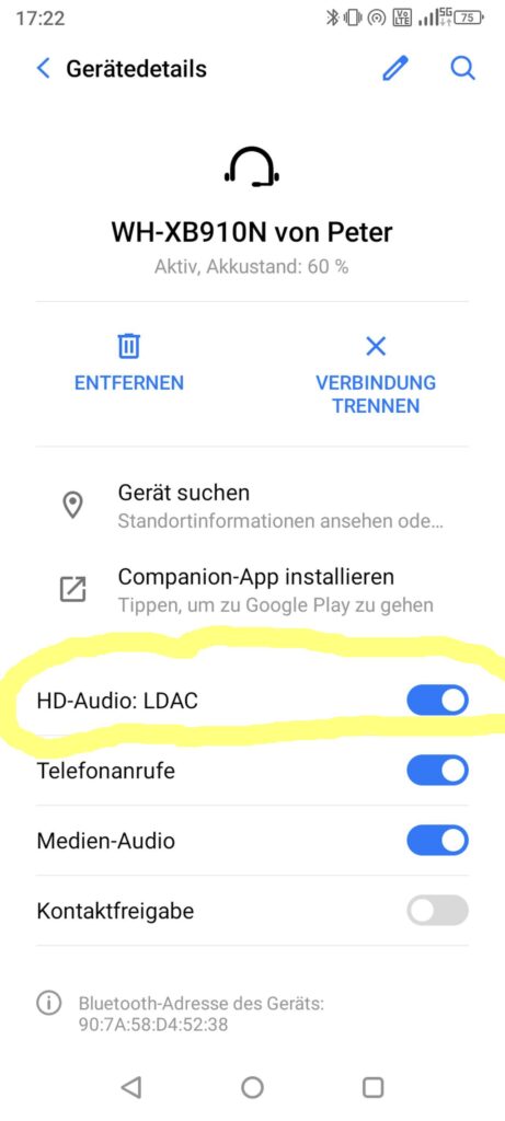 a.2.2) SONY WH-XB910N unterstützt nur SBC und LDAC (HWX)