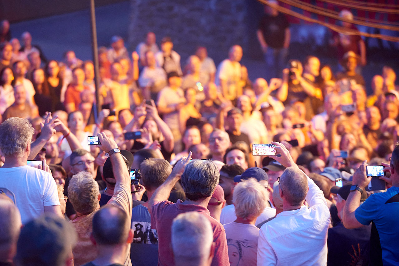 Die große Ausrüstung ist schon eine andere Qualitätsstufe als die kleine Kamera (CANON PowerShot G5X), die sonst bei den Hallenkonzerten herhalten muss. Die Mühe, der ganze Aufwand damit hat sich wohl gelohnt und der Schreiberling ist wahrlich sehr dankbar dafür, dass auch wir einfachen Zuschauer ganz offiziell fotografieren durften.