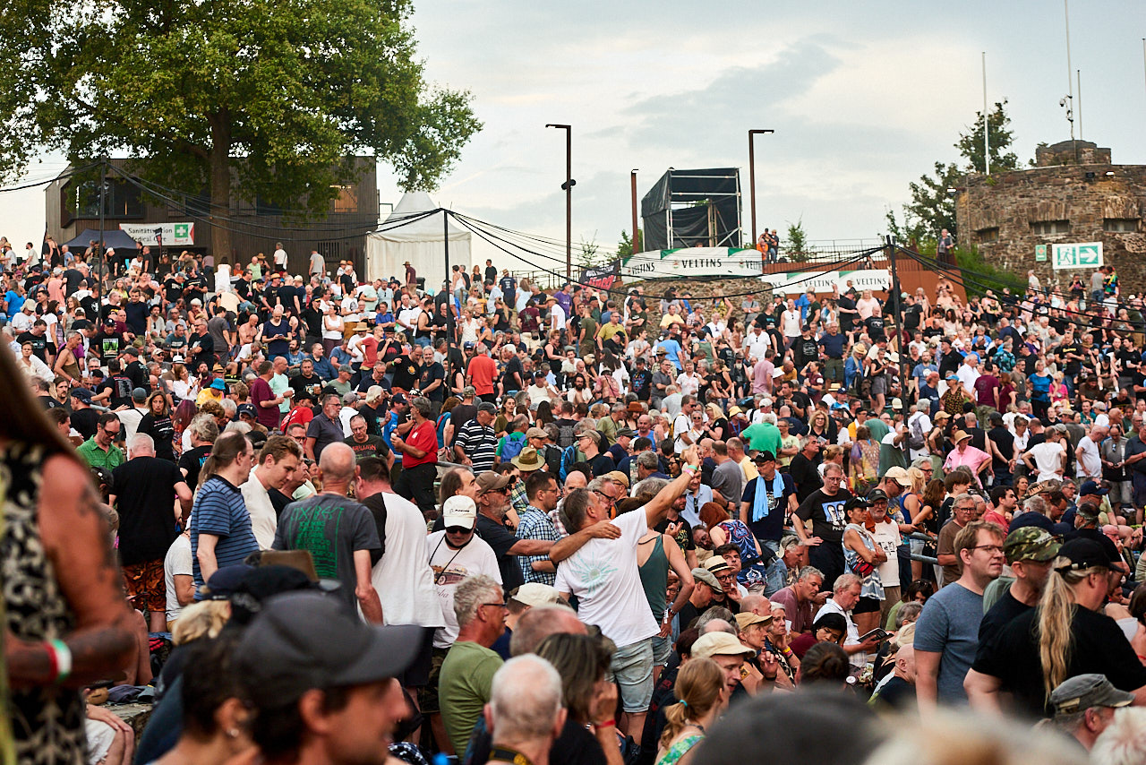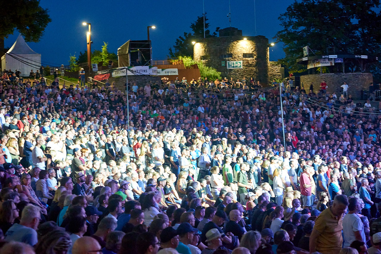 Herr Völklein hat schon im Vorfeld verkündet, dass er das NIGHT OF THE PROG Festival in 2024 auf der LORELEY zum letzten Male ausrichten wird. Das hat sicher noch mal einige NOTP Veteranen motiviert, letztmalig eine Eintrittskarte zu kaufen. Gefühlt war es voll, sicher aber nicht übervoll. Das war in den vergangenen Jahren wohl nicht immer so, vielleicht auch mal nur halbvoll?