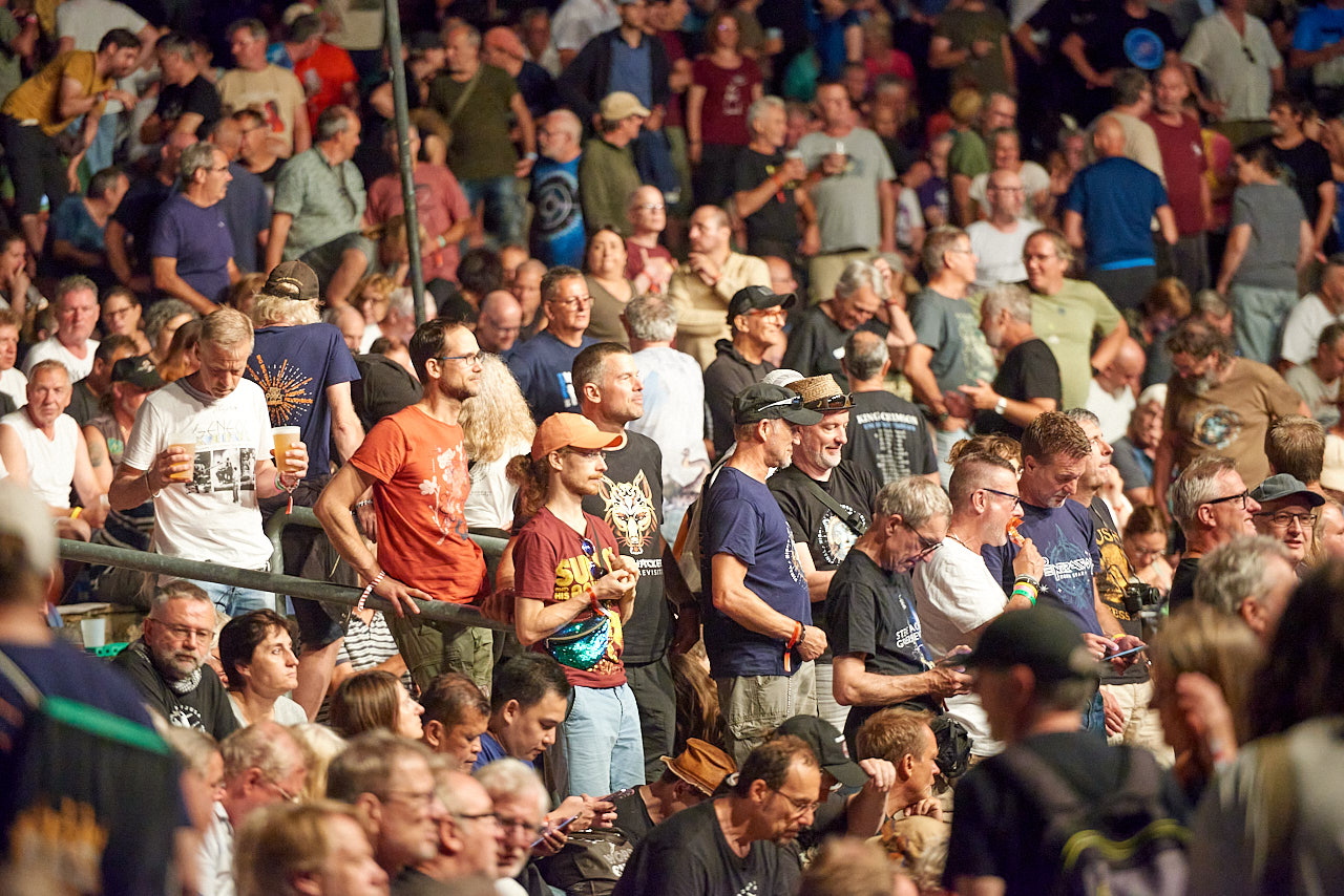 Überhaupt die Fan T-Shirts. Fast jeder Zuschauer hatte eines an, man sah kaum zwei gleiche. Wahnsinn, diese extreme Vielfalt. Sehr gut konnte man die jeweilige Fanbasis einer Band erkennen. Und obwohl MARILLION in 2024 gar nicht dabei war, waren deren Fan T-Shirts gefühlt jeden Tag in einer relativen Mehrheit. Eigentlich hätte man eine Fotostrecke nur mit diesen verschiedenen Fan T-Shits aufziehen müssen. Toll!