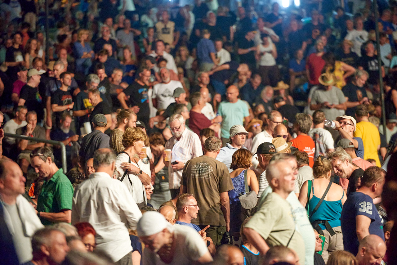 Fotografiert wurde was das Zeug hält. Unmittelbar zwischen Bühne und den Zuschauern zahlreiche professionelle Fotografen. Ende des Jahres erscheint ein bestimmt sehr schönes Fotobuch („The 42 Days of the Prog„) mit Fotos aller NOTP Jahre. Allerdings musste diese ganze Fotografenmeute bei STEVE HACKETT nach ca. fünf Minuten das Feld räumen, offenbar hat Mr. Hackett eine exklusive Livefotografin angeheuert (oder eher sie ihn?).