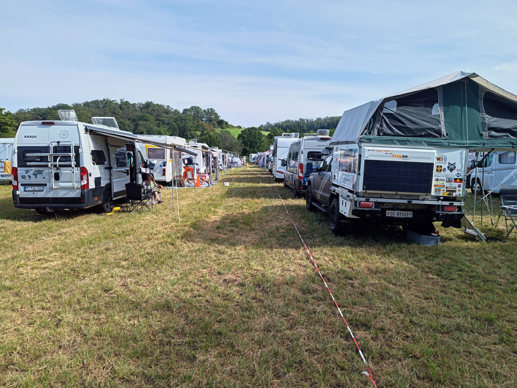 Bereits im Vorfeld wies der Veranstalter darauf hin, dass es außergewöhnlich viele Campingbuchungen geben würde und es eng wird. Wie immer: Wer zuerst kommt, sichert sich die Besten Plätze. Aber auch die Meisten Nachzügler sind noch gut untergekommen, nur wenige mussten recht weit weg am Waldrand kampieren.