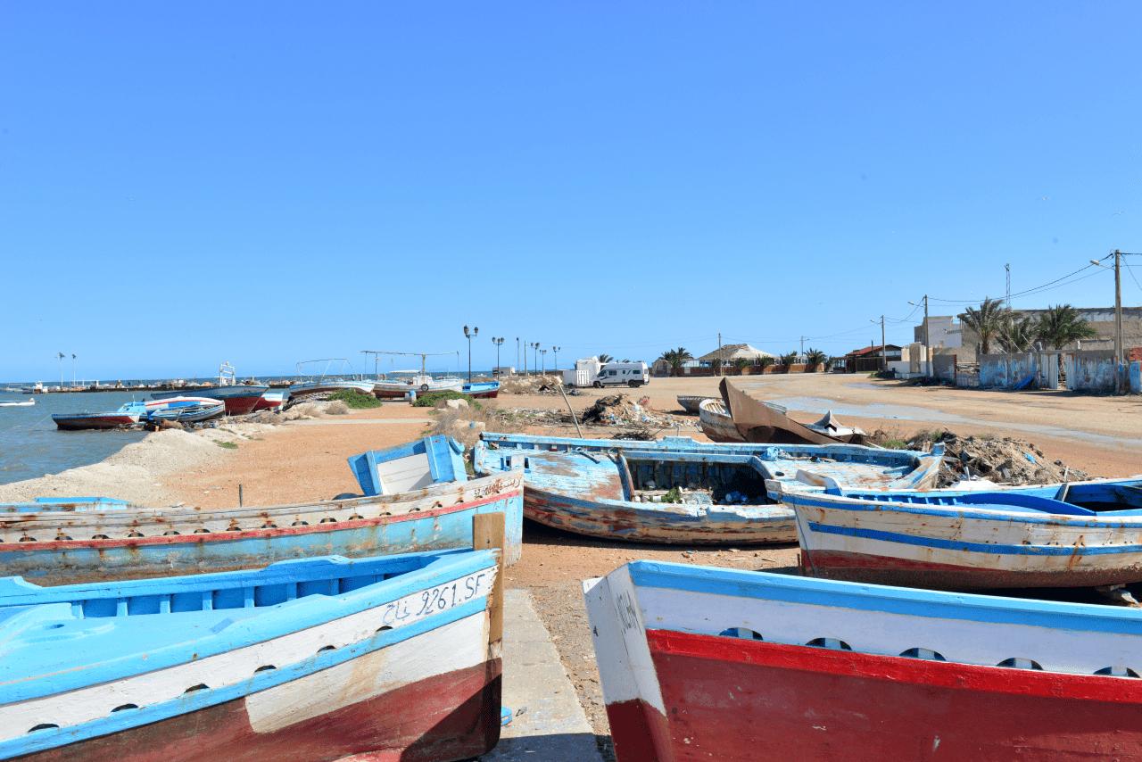 Die KERKENNAH Inseln liegen vor der Haustür der tunesischen Großstadt SFAX im südlichen Mittelmeer und bestehen aus drei einzelnen Inseln, die über Dämme miteinander verbunden sind. Sie ragen nur sehr wenige Meter aus dem Meer hinaus und sind vollkommen flach. Mit ihren oft traurig daher kommenden Palmen erinnert die Hauptinsel mit der Hauptstadt REMLA ein wenig an die ebenfalls völlig flachen Südseeatolle. Aber die KERKENNAH Inseln haben deutlich mehr Einwohner, WIKIPEDIA spricht von 16.000 Menschen.