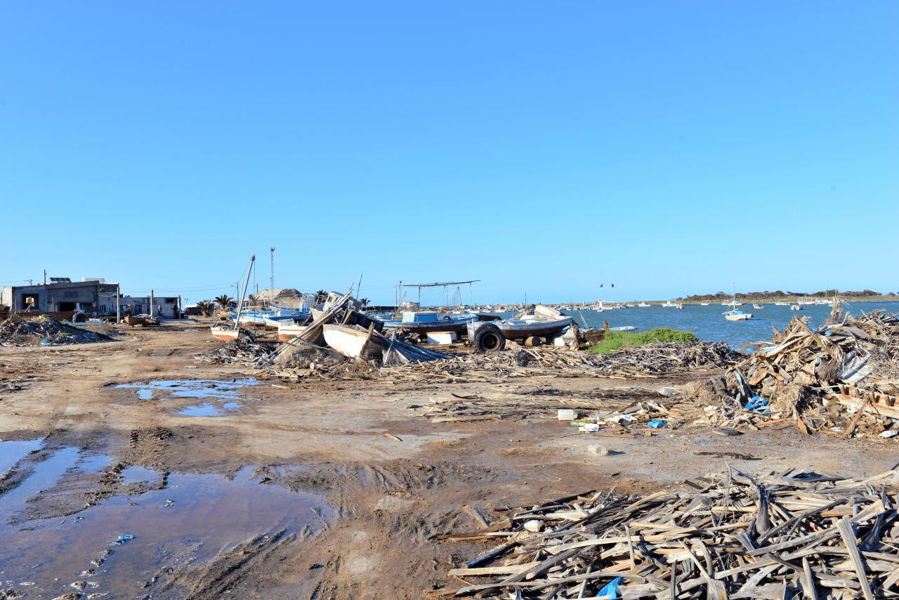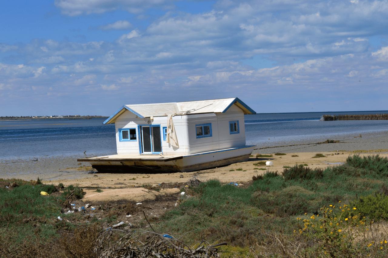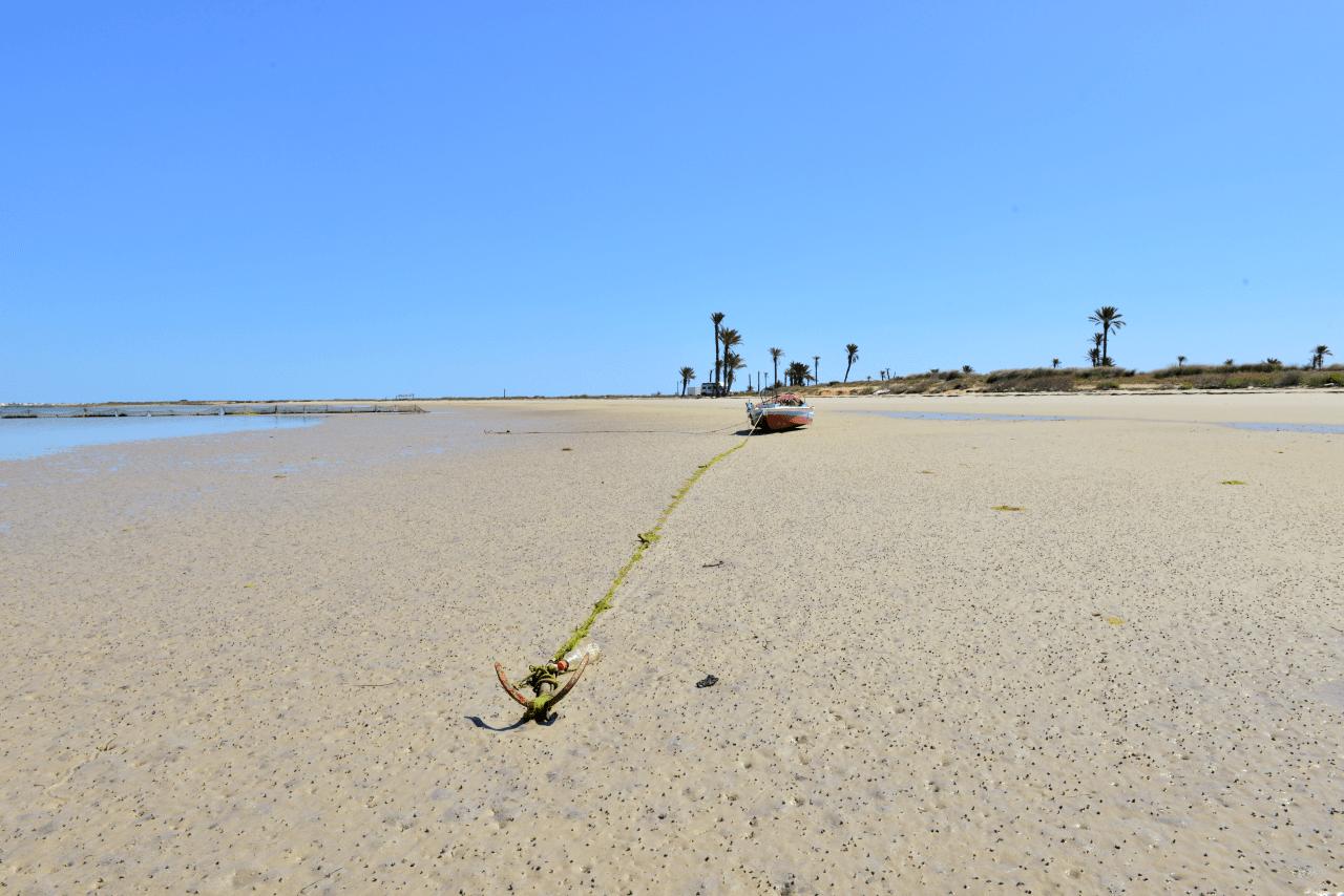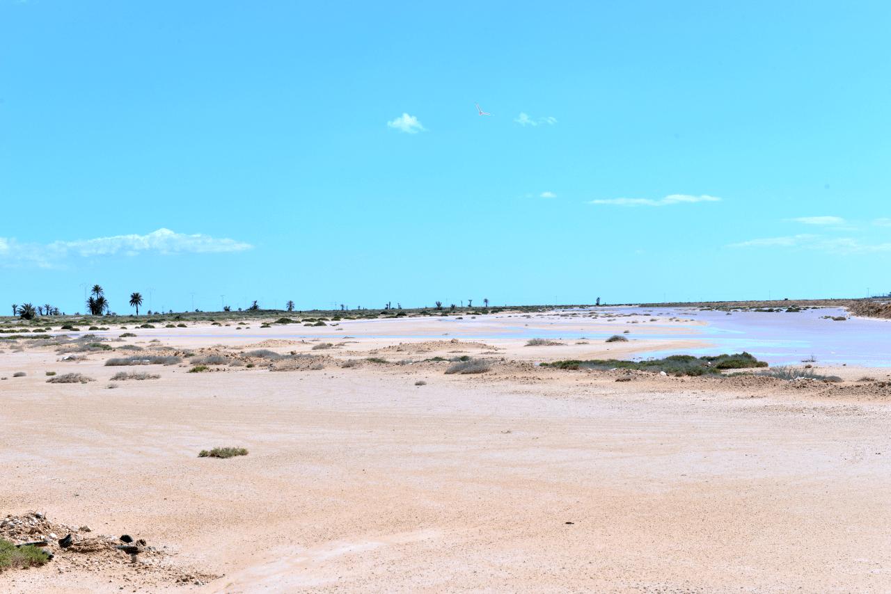 Im Prinzip nur planlos kreuz&quer über die Inseln gebraust. Was auffällt sind die vielen Ferienhäuser. Auch hier wieder ein krasses Missverhältnis zwischen fertigen Gebäuden und unendlich vielen Bauruninen. Dachten, Griechenland hätte das Abo darauf? Bei einem Fußmarsch in der Gegend der alten Festung BORJ EL HASAR fällt auf, das es in TUNEISEN offenbar erlaubt ist Wassergrundstücke zu bebauen und so den Strand faktisch zu privatisieren. Direkt ans Wasser gebaut, von der Straße aus kein Zugang. Doch manchmal gelangt man zwischen Bauruinen doch zum Strand und fragt sich was die Anwohner eigentlich davon haben? Die Wasserlinie aller Strände auf KERKENNAH verläuft ultraflach, man watet hunderte, tausend (?) Meter durch nur knöcheltiefes Wasser. Klar sieht das Wasser nicht aus, wer weiß schon wer hier wo was einleitet? Und dann eben das massive Abfallproblem (siehe oben). Nein, hier möchte man kein Haus am Strand.