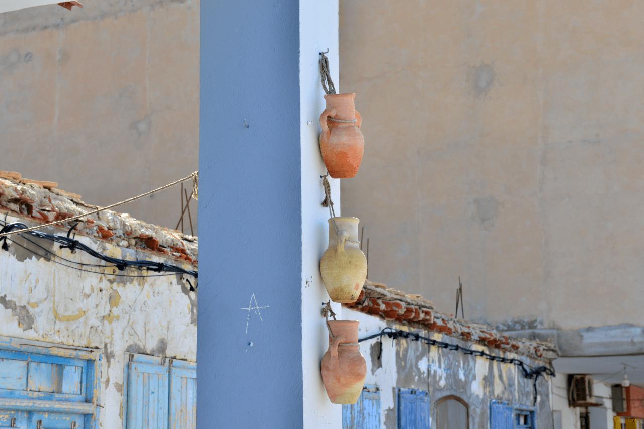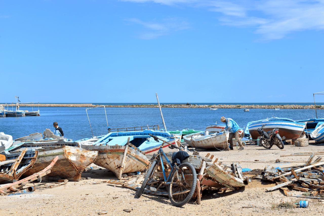 Die Stadt REMLA ist das Herz der Insel und entspricht so ganz unserem bisher gewonnenen Bild einer tunesischen Stadt auf dem Festland. Hauptstraße, an der sich Tankstelle, KFZ Werkstätten, Schlachter, Gemüsehändler, Mini-Baumärkte, Bäcker und Apotheken wild aneinander reihen. Mit Bürgersteig, aber jedes Haus hat seine eigene Höhe definiert und so klettert man auf und ab und muss aufpassen das man nicht vor lauter Gaffen stolpert. Es macht Spaß, hier herum zu strolchen und ein wenig für den Abend einzukaufen!
