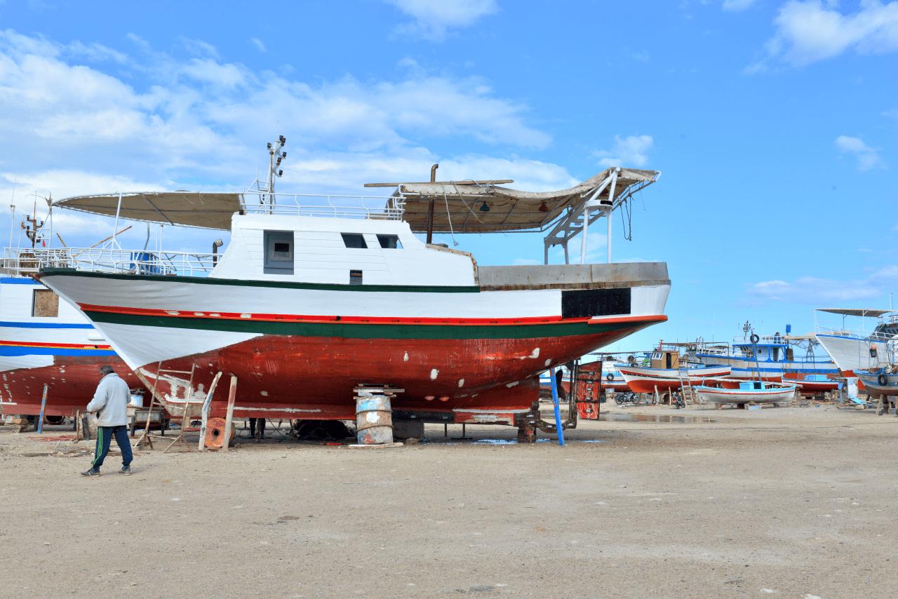 In ALATAYA gibt es so was wie eine Bootswerft für kleine Fischerboote. Nun, wenn man die Grobheit der Spanten und Planken sowie die lässig eingeschlagenen Nägel betrachtet versteht man, wofür die viele schöne Farbe gebraucht wird. Irgendwas muss ja das Boot zusammen halten und abdichten. Was hier an vermutlich kostbarem Material auf einer riesigen Fläche verstreut herum liegt ist verrückt. Das kann ja wohl nur eine noch nicht verstandene Form von Lagerhaltung sein?