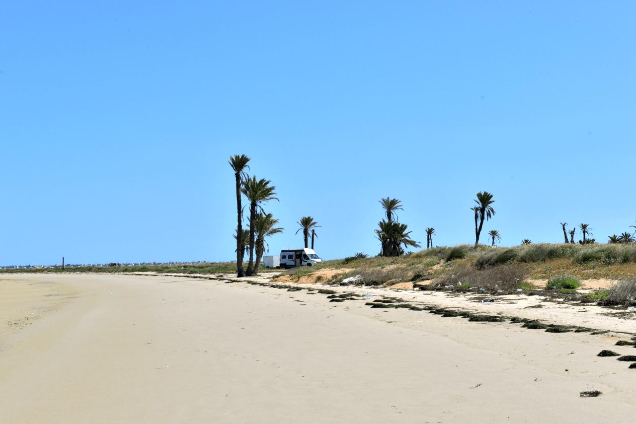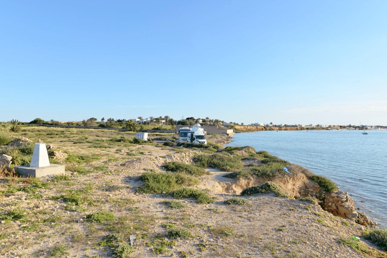Für Wohnmobilfahrer ergeben sich auf flachen Inseln selbstverständlich manigfache Stellplatzmöglichkeiten direkt am Meer. So auch auf KERKENNAH. Jedoch, und dies sei hier nur einmal und ausdrücklich erwähnt: TUNESIEN hat ein massives Müllproblem. Wir können uns nicht erinnern so viel Müll in einer Landschaft gesehen zu haben wie hier. Da muss gehörig was schief gegangen sein und vermutlich geht die Müllentsorgung immer noch gehörig schief denn man sieht nicht nur alten Müll der da seit Jahrzehnten herum liegt sondern auch frischen. Hier und da gibt es spezielle Plastikflaschen Sammelcontainer. Nur sehr selten Mülltonnen. Unklar, ob die wirklich mal geleert werden (wohin?)?