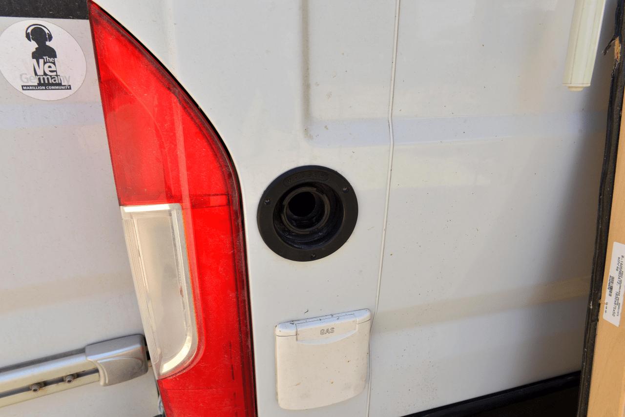 Seit ein paar Tagen tropft KNAUSi am Heck. Immer dann, wenn Wasser getankt wird. Aber auch danach, wenn der Tank voll ist. Das hat er vorher nicht gemacht. Wasser tanken geht bei unserem KNAUS BOXSTAR 630 auf Basis FIAT DUCATO so: