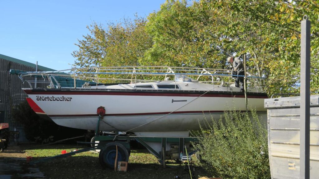 Nun, die Hoffnung auf einen Hallenplatz verflog, je näher der Oktober kam. Derzeit einfach kein Platz in den beiden Hallen der W.Y.K. für ein zusätzliches Boot. OK, dann ist das eben so und STÖRTEBECKER muss erst mal draußen bleiben.