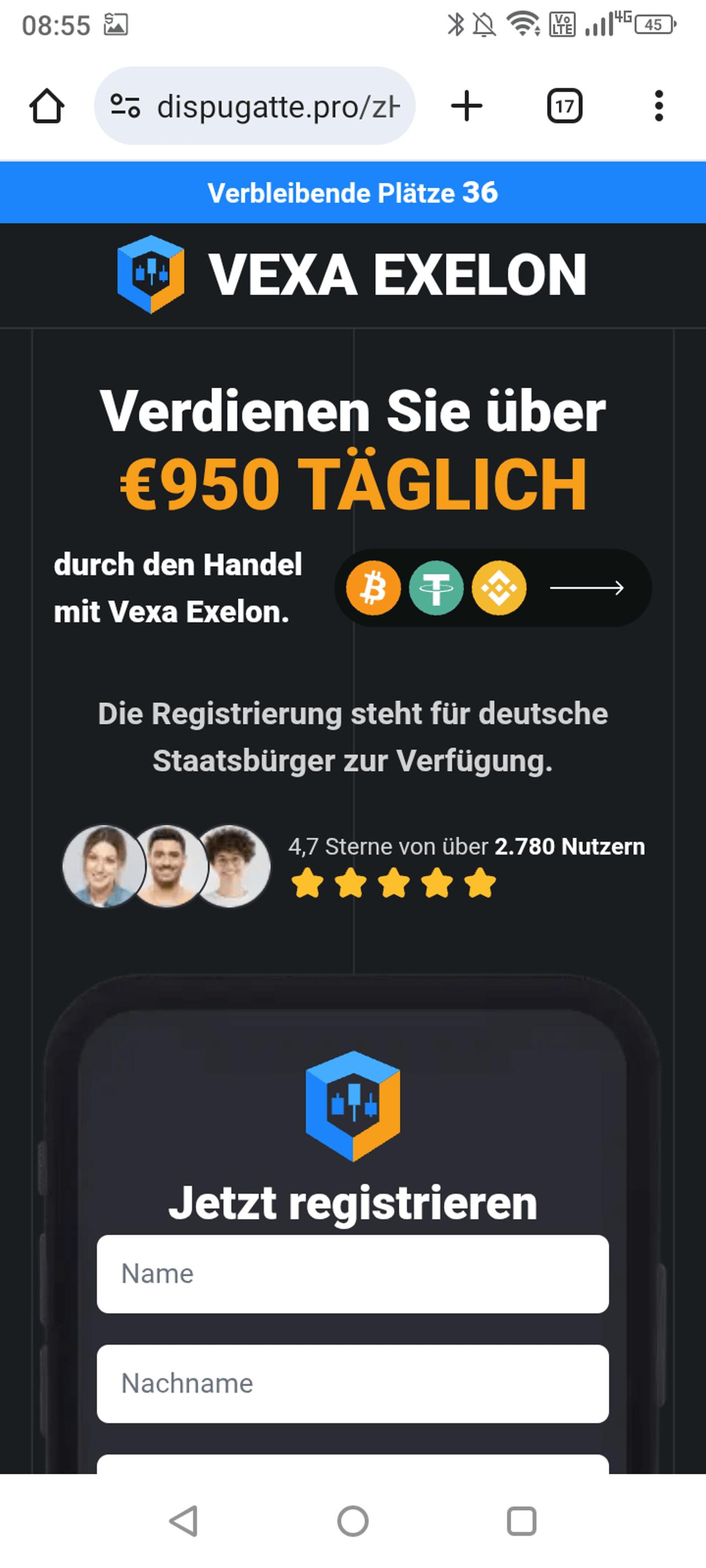 P.S.2: Also wirklich tot lachen würde ich mich ja, wenn die vermutlichen „VEXA EXELON“ Betrüger bei ihrer Aufhängerwerbung unter falscher Flagge Namen von anderen Internetbetrügern verwenden würden weil sie denken, die seien seriös. Also das wäre dann doch mal ein echter aktiver Schenkelklopfer, oder?