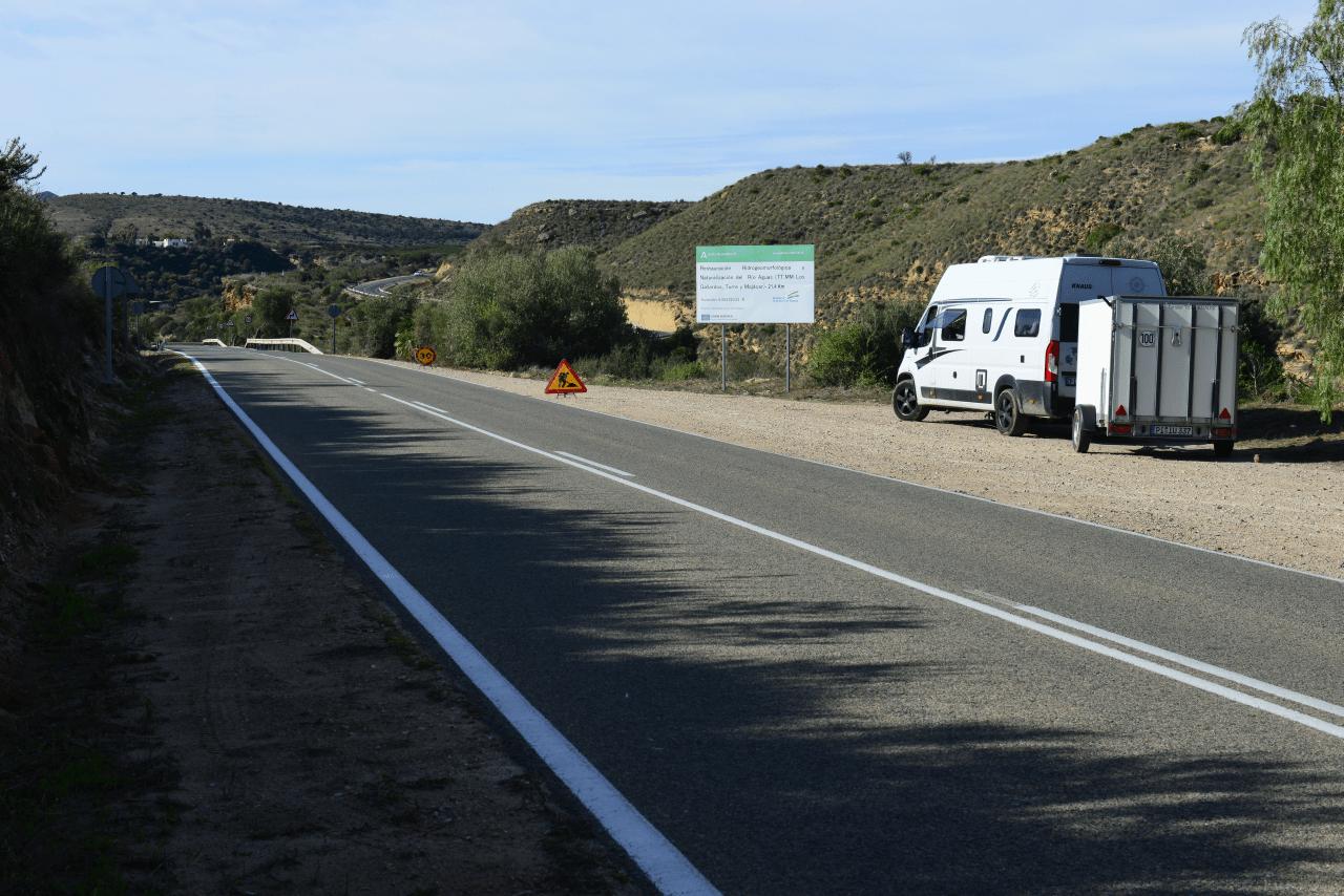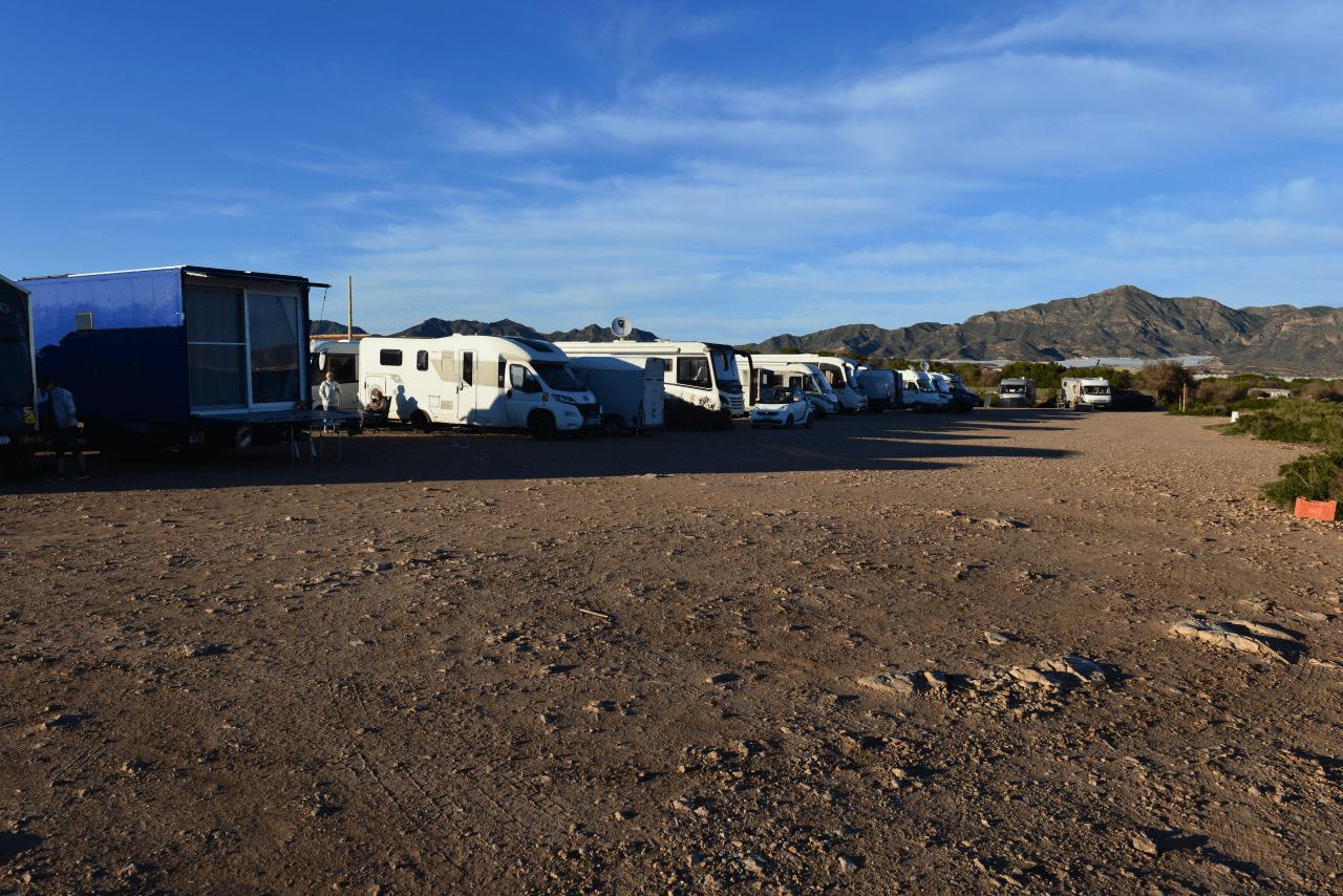 Nach einiger Kurve- und Ausprobiererei wird ein freier Stellplatz in der Nähe von MAZARRON direkt am Wasser, im Rücken eines riesigen Plastikgewächshauses bezogen. Für eine Nacht OK, auf der berühmt berüchtigten Ziegenwiese gleich neben an gibt es wegen geschätzt einhundert Fahrzeugen keinen freien Platz. Augenscheinlich viele Dauercamper, die hier den Winter verbringen und sich durchaus häuslich eingerichtet haben. Man fragt sich was das wohl für ein Schlag Mensch sein muss, der an solchen Orten, dicht wie Sardinen in der Dose gepackt, ohne jegliche Entsorgungsinfrastruktur unter solchen Umständen seinen Winter verbringen möchte?