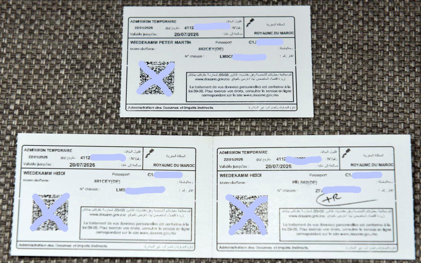 Die Reisepässe der KNAUSi Besatzung tragen ja bereits die MAROKKO Stempel der 2022 Reise, darunter ist handschriftlich eine Nummer vermerkt. Der Grenzpolizist tippt diese eifrig in seinen Computer ein, wozu auch immer?