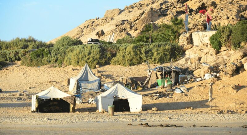 Die Halbinsel AD DAKHLA im Süden MAROKKOS beginnt landschaftlich spektakulär. Die zuvor sehr eintönige Wüstenlandschaft bricht auf einmal auf, der Höhenunterschied zum Wasser beträgt vielleicht gerade einmal 50 Meter zwischen Hochebene und Küstenstreifen. In sich durch die Natur ergebene Nischen wurden Hotels und Resorts in aufsehen erregender Architektur gebaut. Buchstäblich in die Landschaft eingebettet. Zusammen mit dem Wasser der riesigen Lagune sieht das dann schon sehr besonders aus.