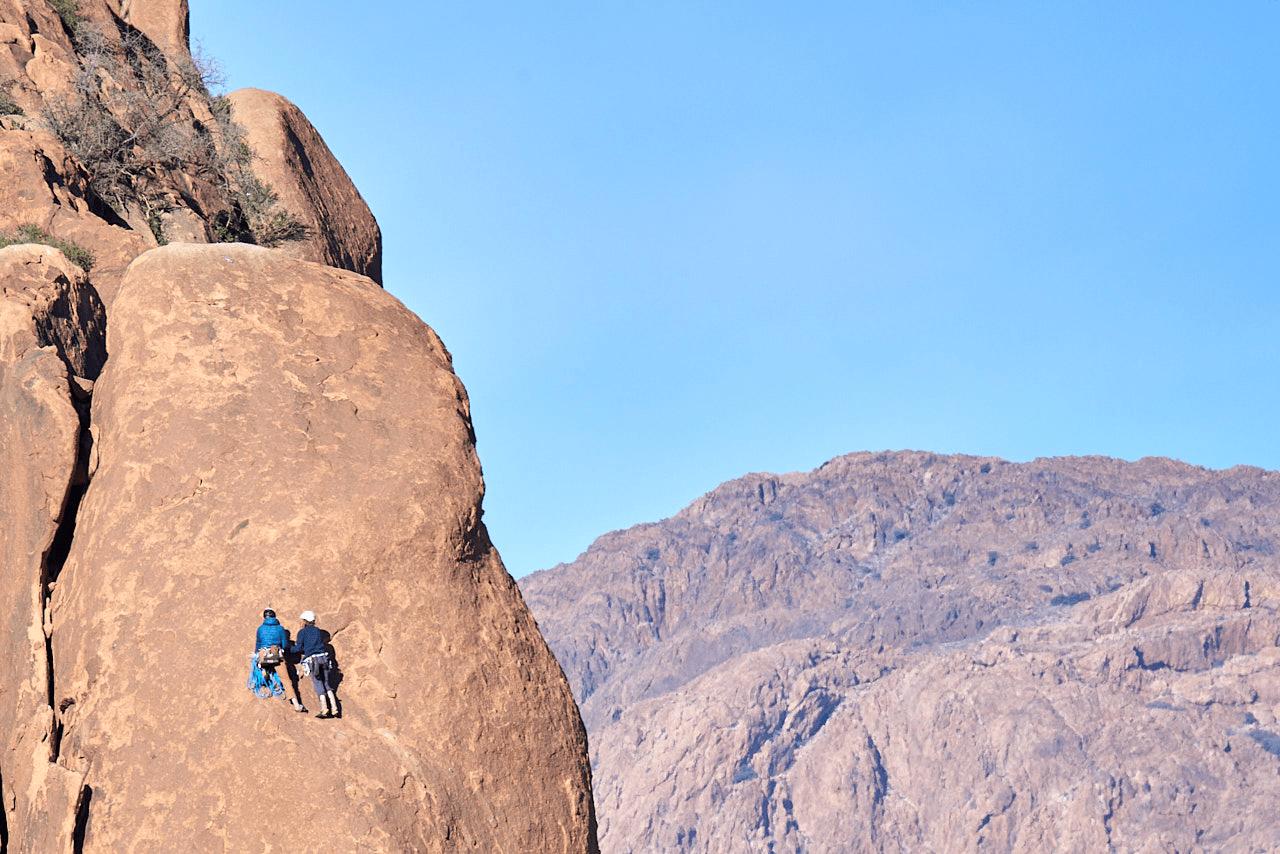 Der Fotograf springt auf, läuft den beiden Menschen hinterher bis diese endlich ihren Marsch nach Hause unterbrechen und sich umdrehen. Etwas erstaunt blickt der Fotograf in die Gesichter von zwei jungen Frauen und fragt etwas verdaddert ob die beiden wohl vorhin den Fels bestiegen hätten? Ja, das waren wir, so die Antwort. OK, wollt ihr die Fotos haben? Aber heute nicht mehr. Morgen? Ja, klar wir kommen vorbei!