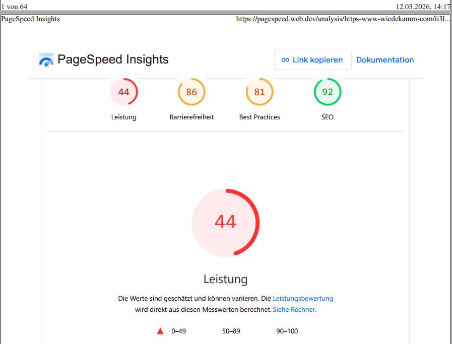 Tja, und da kam nun beim letzten Selbsttest heraus das WIEDEKAMM.COM wirklich schnarchend geworden ist. Jedenfalls aus der subjektiven Sicht von GOOGLE.