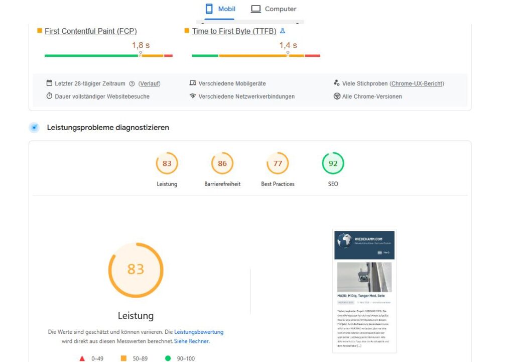 Und schon katapultiert man seine angeblich schnarchende Website aus dem unteren Drittel des GOOGLE Performance Ranking in deren oberstes Drittel.