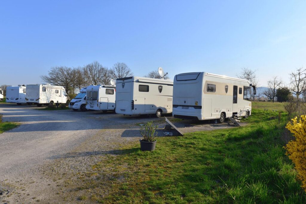 Völlig schräg ist die zu beobachtende Größe der Wohnmobile. KNAUSi gehört wie fast überall zu den kleinsten, hier zirkelt sich sogar ein Dreiachser gekonnt auf einen viel zu kleinen Strandstellplatz. Weit und breit ist dieser Campingplatz als einziger um diese frühe Jahreszeit geöffnet und bereits am Sonntag zu mindestens einem Drittel belegt.