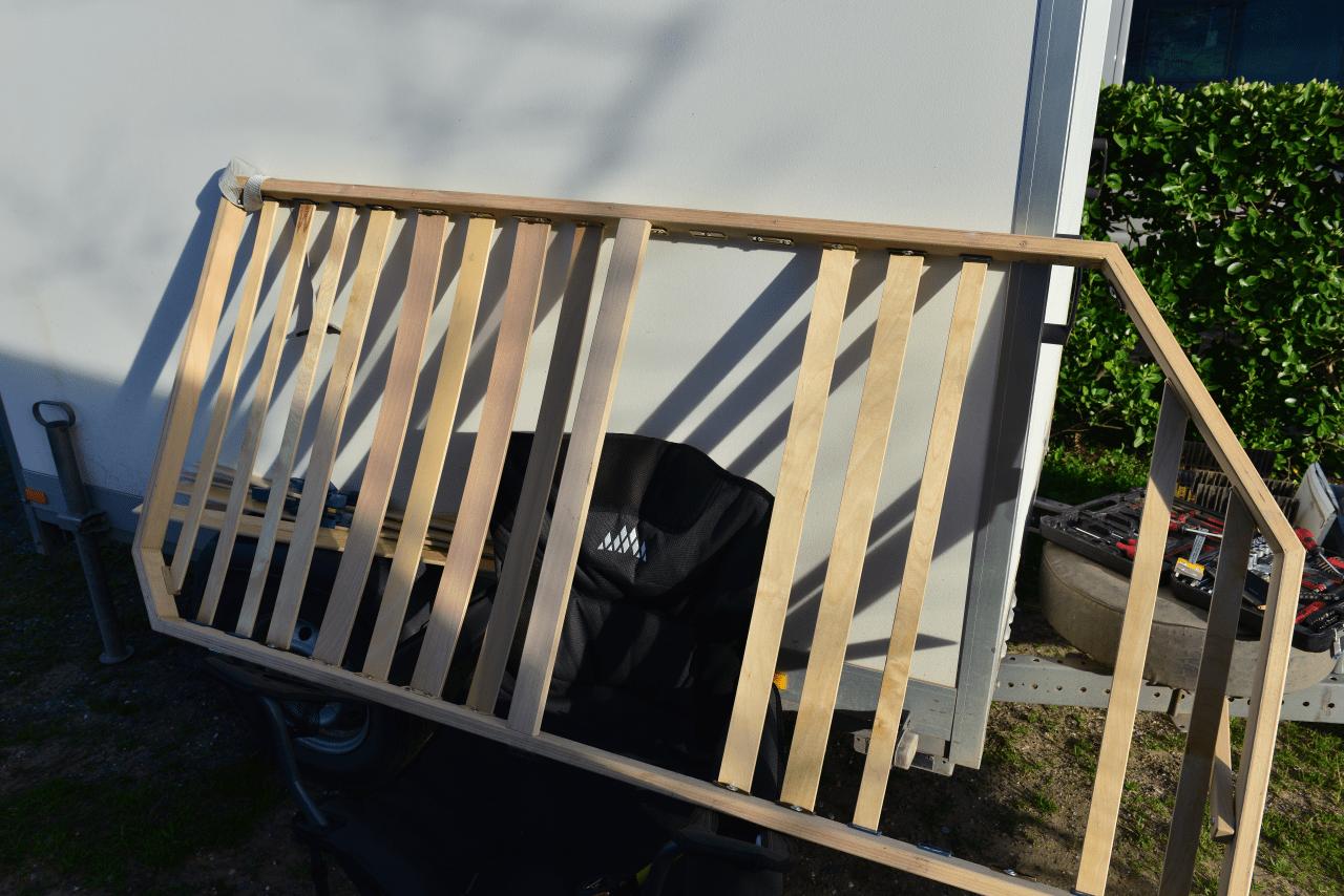 Der Bordmechaniker hat ein paar kleine KNAUSi Jobs auf dem Zettel, die hier auf dem Campingplatz ganz hervorragend abgearbeitet werden können. Da ist zunächst die Reparatur des Lattenrostes zu erwähnen. Der Baumarkt in AGDE hat neue, breitere Federlatten samt Halterungen im Sortiment die dem Gewicht des darauf liegenden wohl eher gerecht werden.