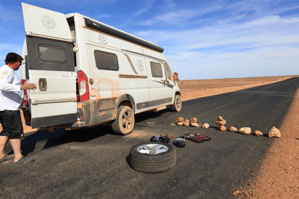 Hergang im Tagesbericht hinreichend beschrieben. Die finale Reifenreparatur in TAFRAOUTE hat bis jetzt einwandfrei gehalten und der Reifen wird auch so weiter gefahren. In schätzungsweise 5.000 Kilometern müssen alle vier Reifen sowieso mal wieder getauscht werden.